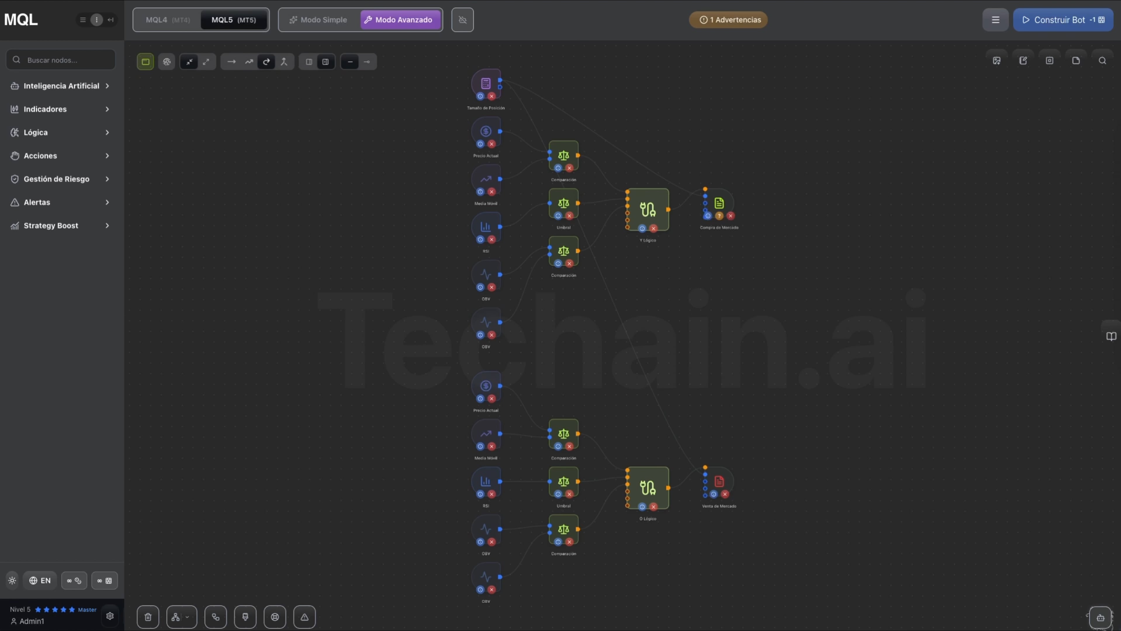Menos pasos: Si el Copilot dice «deberías conectar el RSI a la Comparación», aparece un botón «Conectar RSI → Comparación». Un clic en Aplicar y la conexión se crea en el canvas. Ya no tenéis que recordar qué conectar ni hacerlo manualmente.