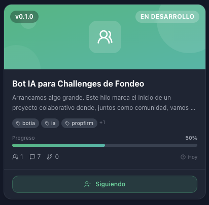 Mensaje del hilo Bot IA para Challenges de Fondeo y Cuentas Fondeadas (Proyectos Colaborativos de Techain). Este EA es solo la base actual del proyecto fina, el bot definitivo lo seguimos construyendo entre todos.