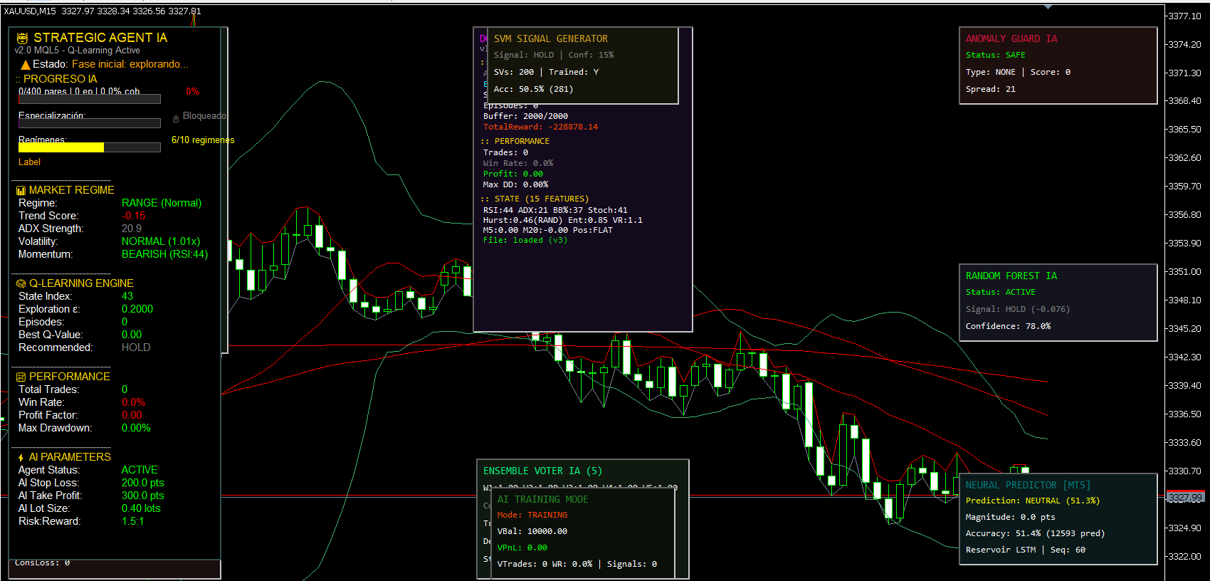 hola, alguien me puede ayudar porfavor, el backtest lleva 12 hrs. cero trades. el progreso de IA siempre a estado en 0 % y la fase inicial explorando. ningun avance.