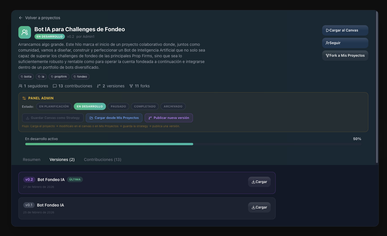 Luego está el bot colectivo de fondeo IA (es un proyecto en desarrollo aun), que a este se accede desde aquí:
