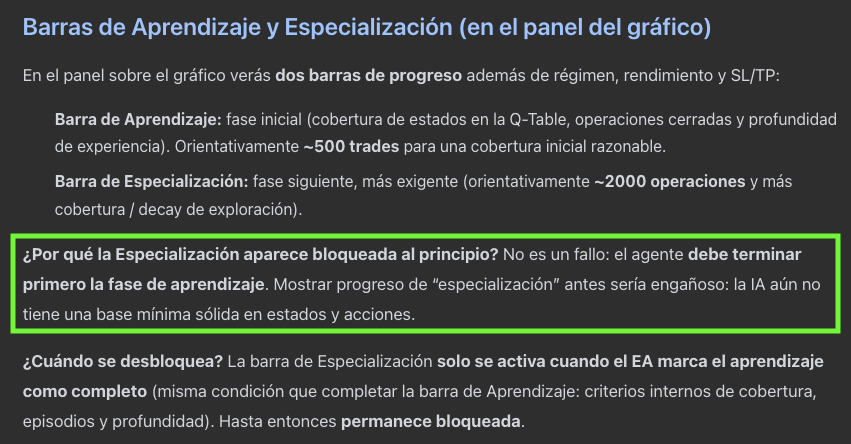 En resumen, el EA con IA que cargas en el VPS nativo de MT5 no puede comunicarse con el archivo Q-Table de tu pc, por lo que no puede continuar aprendiendo, se paraliza.