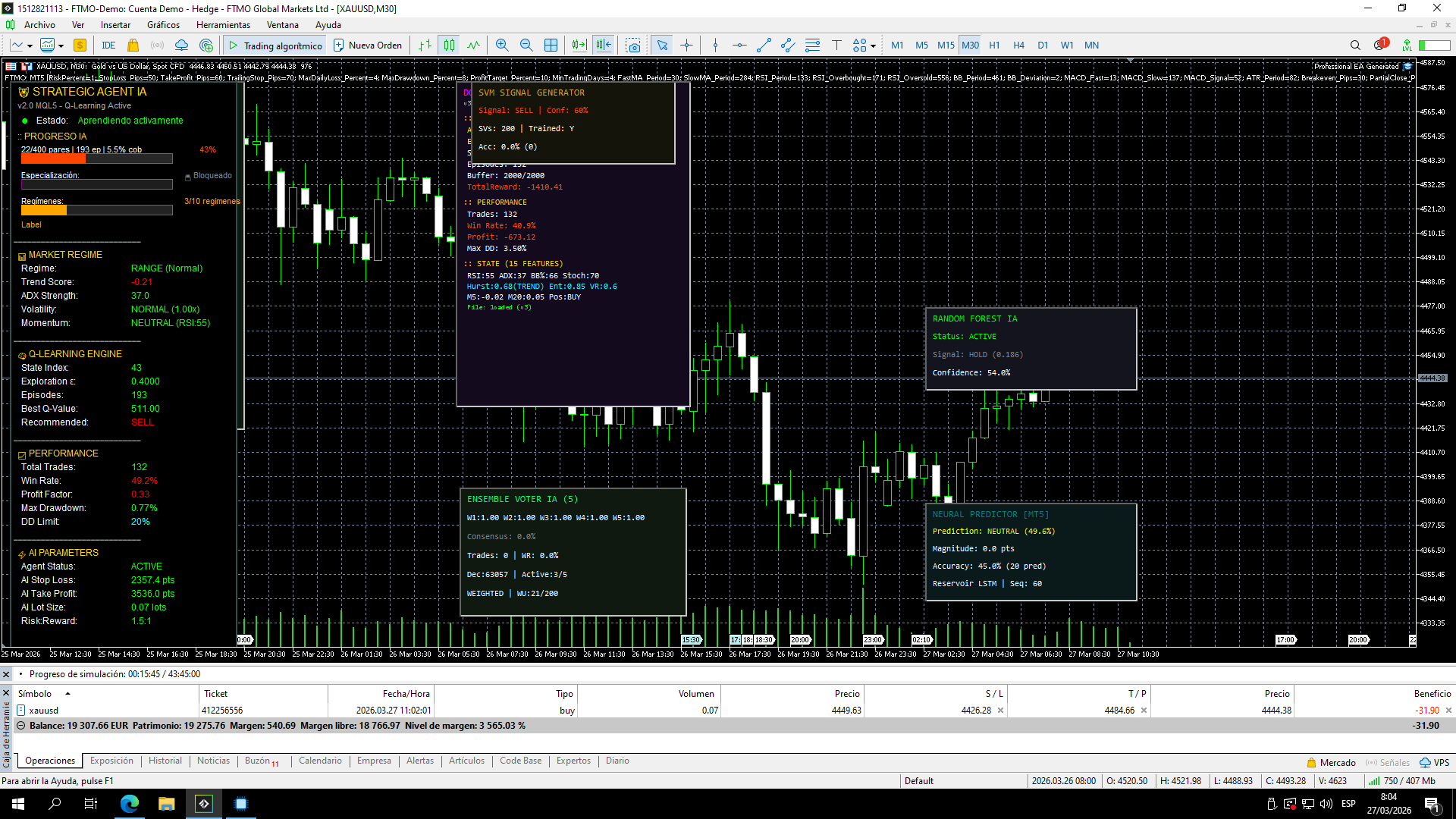 Hola, esta funcionando el backtest visual con las fechas desde el marzo de 2023 hasta marzo de 2026.. Se esta realizado en la terminal de M5 de la demo de FTMO, con el XAUUSD en 30m , Me podrías orientar Ignacio que tengo que hacer ahora .Un saludo.