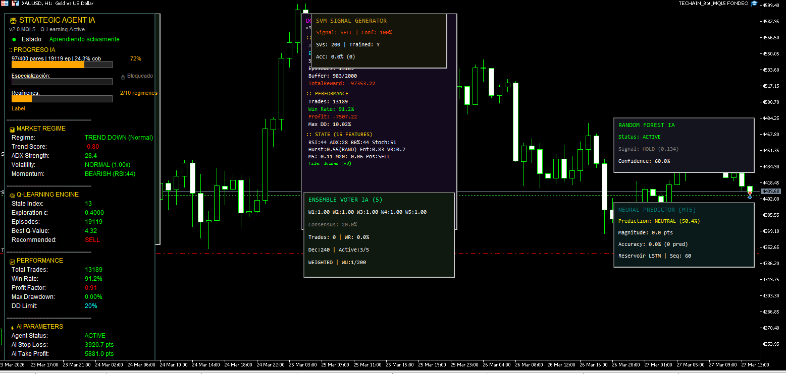 Sólo cambie los parámetros Lotaje Máximo 0,01 y Drawdown 4% del nodo Agente Estratégico IA y DQN IA y descargado para MT5.
