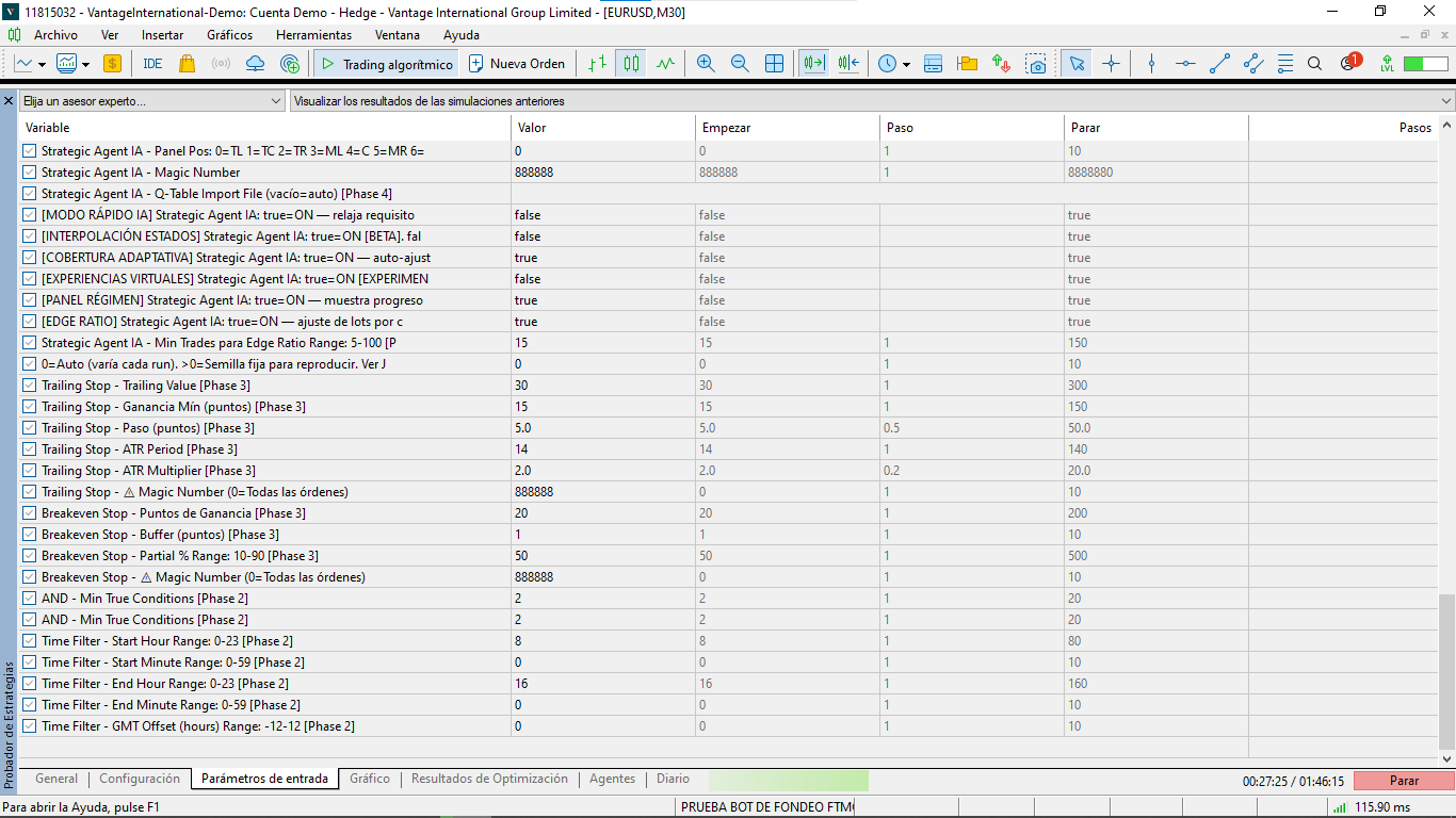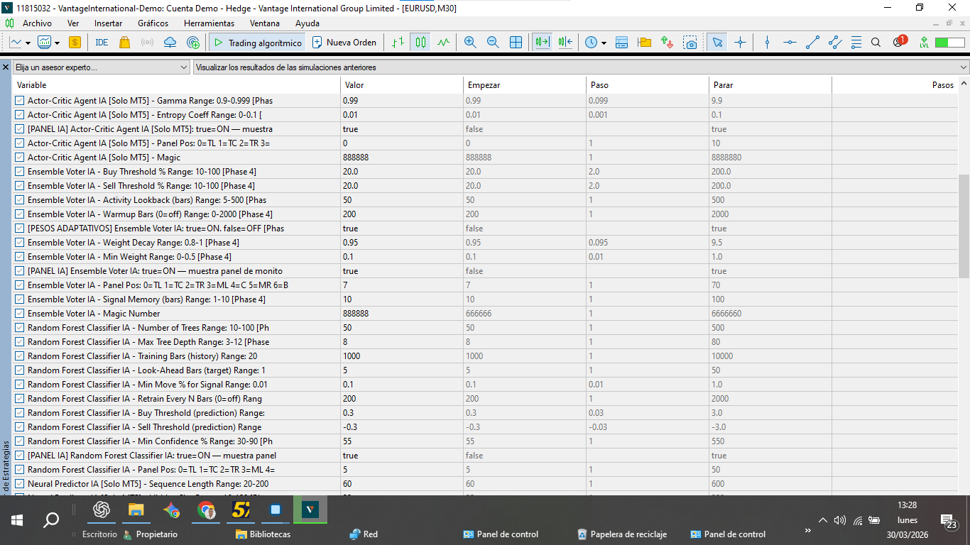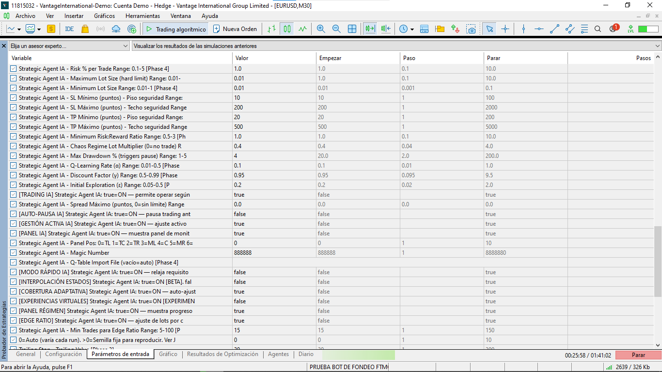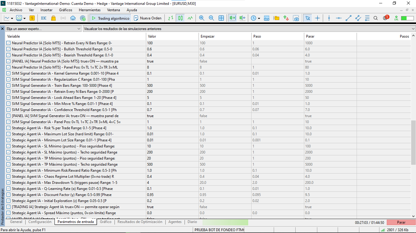 AHORA ESTOY DE VUELTA HACIENDO EL ENTRENAMIENTO DEL OT CON IA DE FONDEO CON EL EURUD EN 30 MIN ESTE ES MI SET DE PARAMETROS