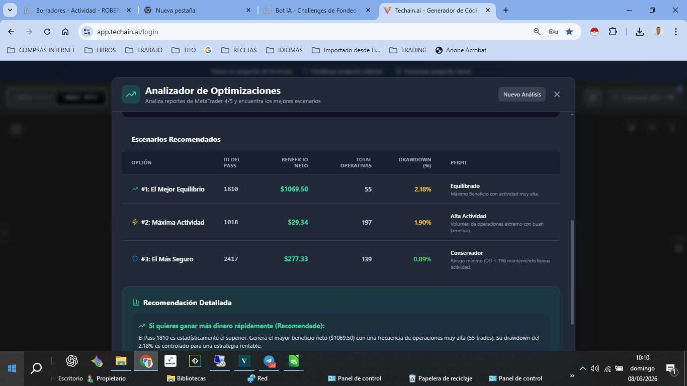 he optimizado el bot de fondeo de FTMO le he pasado a la plataforma y he elegido un paso le hice el backtest de un año y me sale con ratio muy bajo de beneficio asi no podre pasar el challenge taradaria demasicado